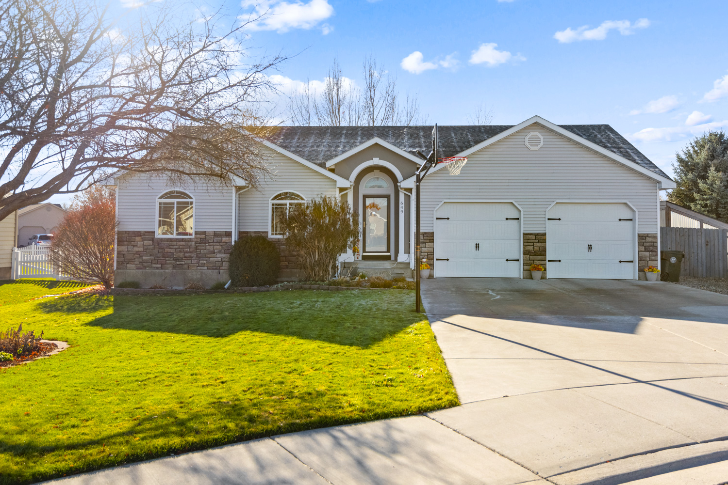 This beauty is INCREDIBLE!! From the spectacular vaulted entryway to the beautiful floor and open kitchen, dining, and living room floorplan, this home is a KEEPER!! 2 more bedrooms downstairs along with a large EXERCISE room, family room, and of course another bathroom! Then wander on out to a backyard that is an absolute DREAM!!! Completely fenced with fruit trees and berry bushes and beautiful flowerbeds! And don’t forget a garden shed and even a GREENHOUSE!!! Check all the boxes if you are looking for a FANTASTIC home in a WONDERFUL neighborhood – centrally located to EVERYTHING!!! Come and take a look!!