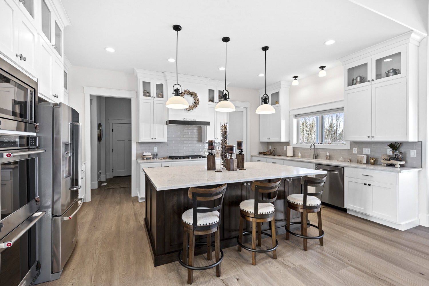 Are you looking for a slice of paradise? Nestled in the adorable hamlet of Woodville is this one of a kind abode that is sure to delight even the most distinguished of tastes!! This gorgeous home sits on a full acre of the most beautiful tree lined park-like setting you will ever see! It’s breathe-taking and complete with fruit trees, waterfall feature, firepit, hammock, beautiful trex deck, established lawn, trees, , and multi-colored shrubs~! And the home is not your ordinary home! It is decorated and finished with an artist eye for detail! 3 Bedrooms, 2 1/2 Bathrooms upstairs, dining area, living room, window-enclosed covered patio showcasing the incredible backyard serves as both a family room and formal dining area and opens up to the coveted deck and backyard! The basement boasts 3 bedrooms – one with an incredible new bathroom/shower combo that will delight the teenage in us all! There is a wet bar/kitchen area, multi-level theatre room, game/family room area and adorable playroom under the stairs! This is one of those homes that you covet and remember!! That 6 bedrooms/5 bathroom custom home with main floor laundry and 3 car garage you’ve been searching for!!